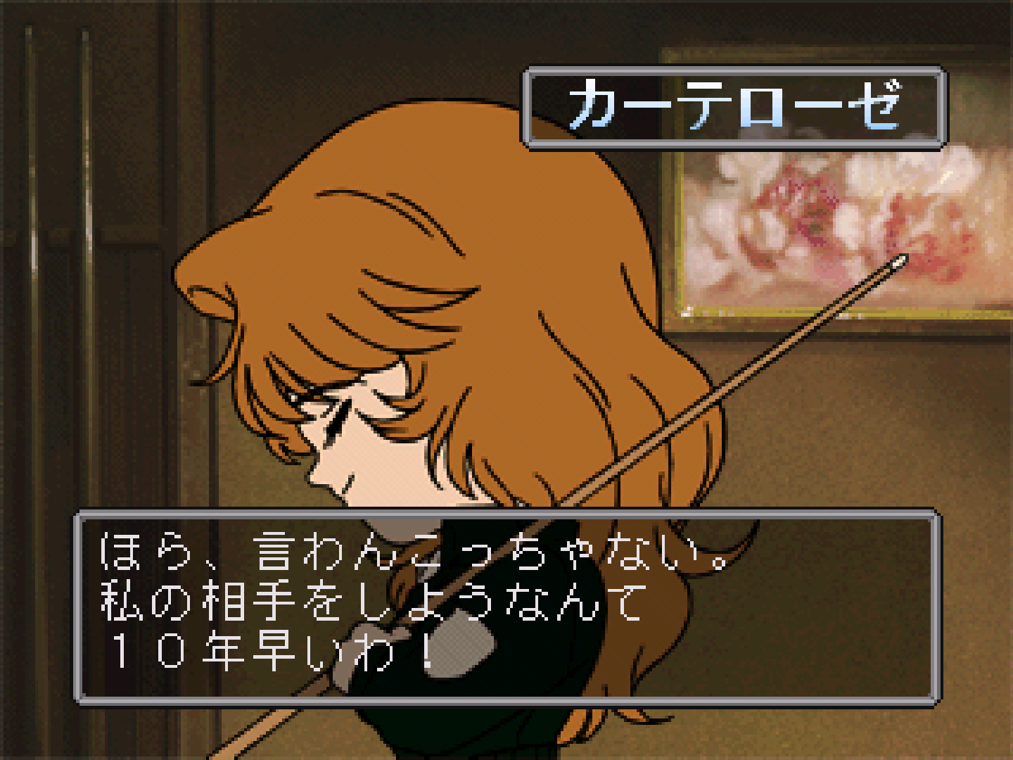 (When you lose, you get a game over screen corresponding to the side you are playing as and are taken back to the title. Thankfully, you can save in between opponents.)