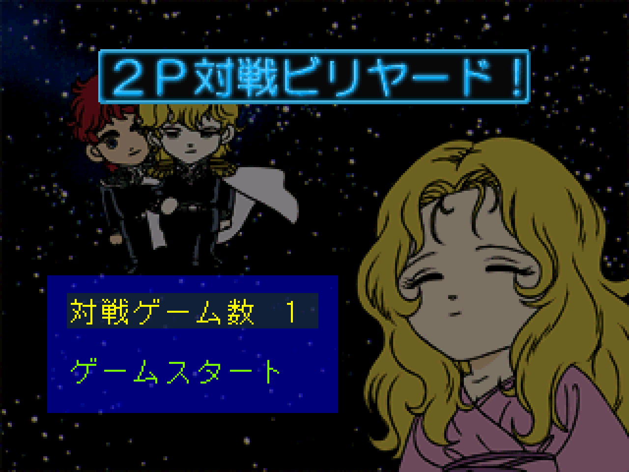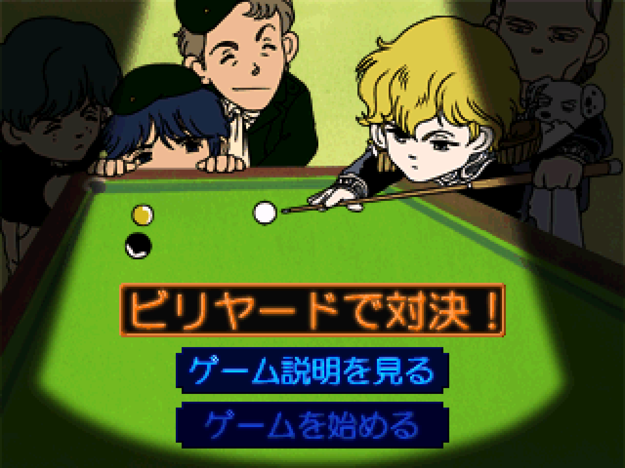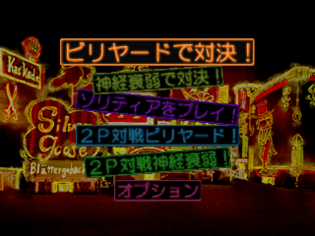 There are three games to choose from: billiards, concentration, and solitaire. You can also play two-player billiards and concentration, as opposed to playing against the CPU.